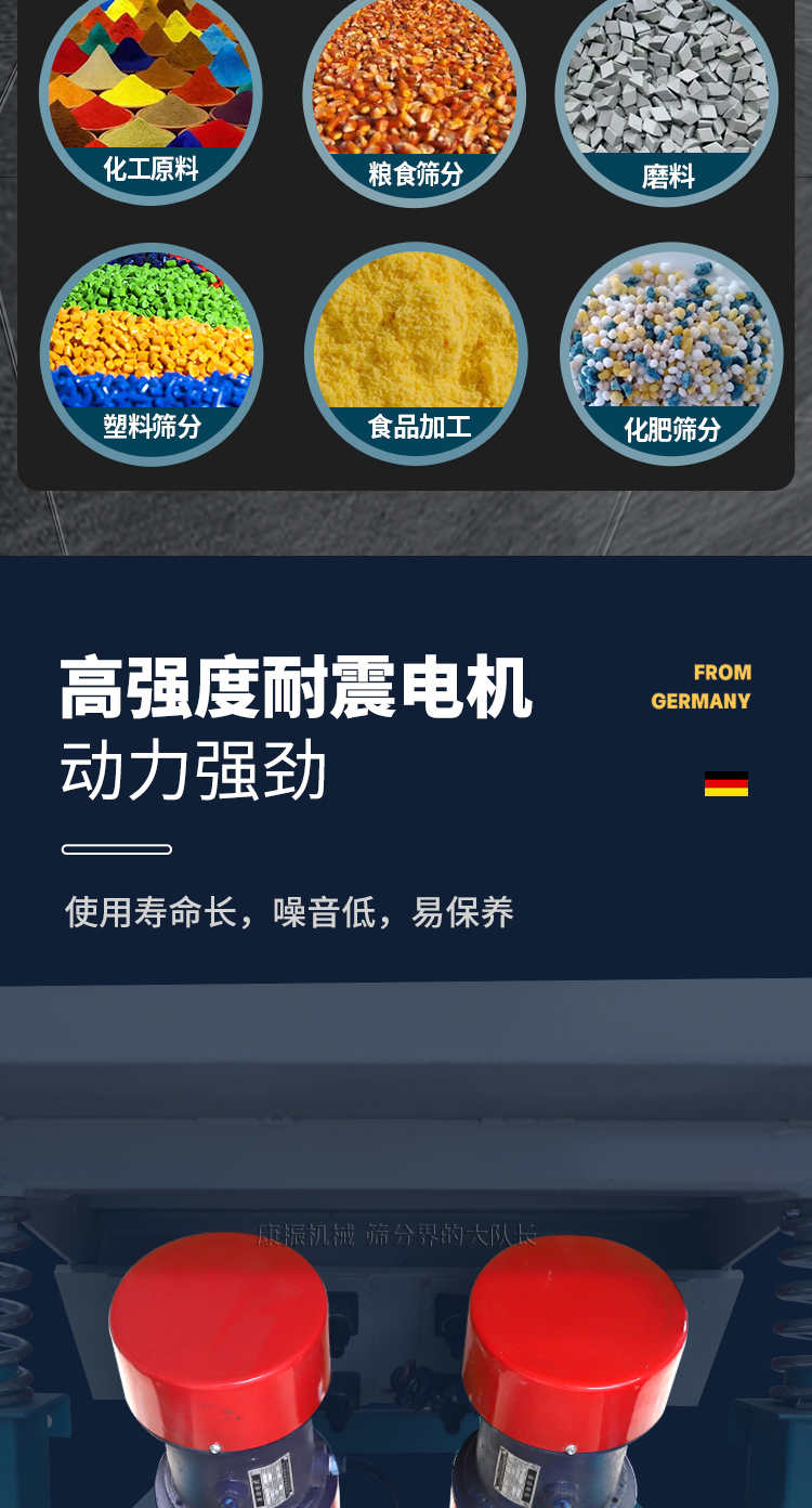 對粉狀、顆粒狀物料的篩選和分級,廣泛應(yīng)用于塑料、磨料、化工、醫(yī)藥、建材、糧食、炭素、化肥等行業(yè).直線振動篩(直線篩)系新型的篩分設(shè)備,廣泛用于礦山、煤炭、冶煉、建材、耐火材料、輕工、化工等行業(yè)。