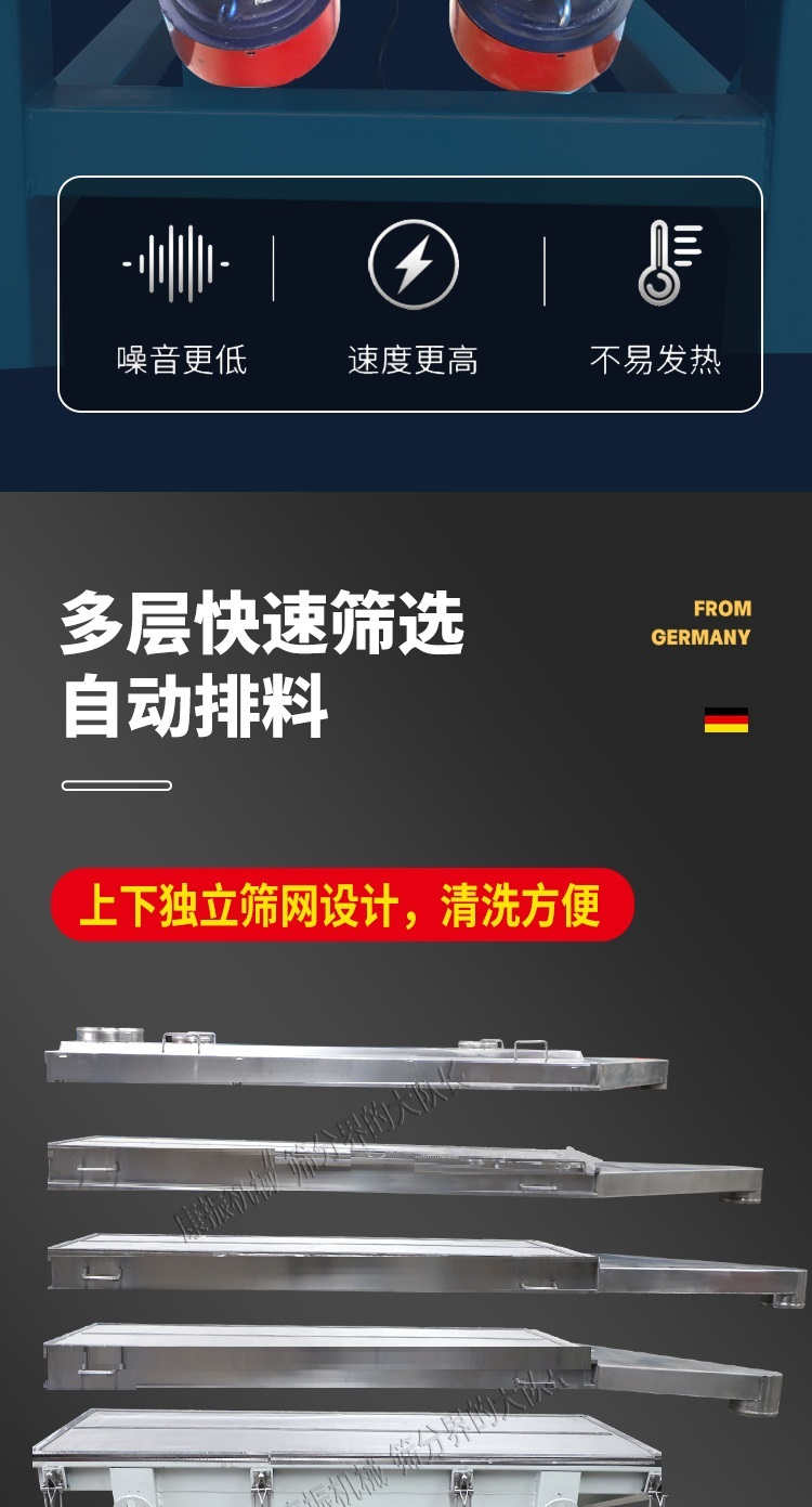 是以利用振動電機(jī)激振作為振動源,使物料在篩網(wǎng)上被拋起,同時受力向前做直線規(guī)則運(yùn)動,物料從給料機(jī)均勻地進(jìn)入篩分機(jī)的進(jìn)料口,通過多層篩網(wǎng)產(chǎn)生數(shù)種規(guī)格的篩上物、篩下物、從各自的出口排出。具有耗能低、產(chǎn)量高、結(jié)構(gòu)簡單、易維修、全封閉結(jié)構(gòu),無粉塵溢散,自動排料, 更適合于高產(chǎn)能流水線作業(yè)。