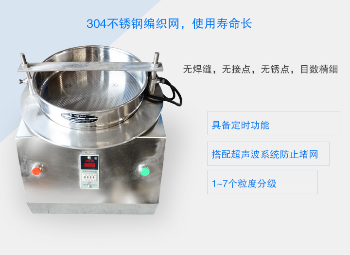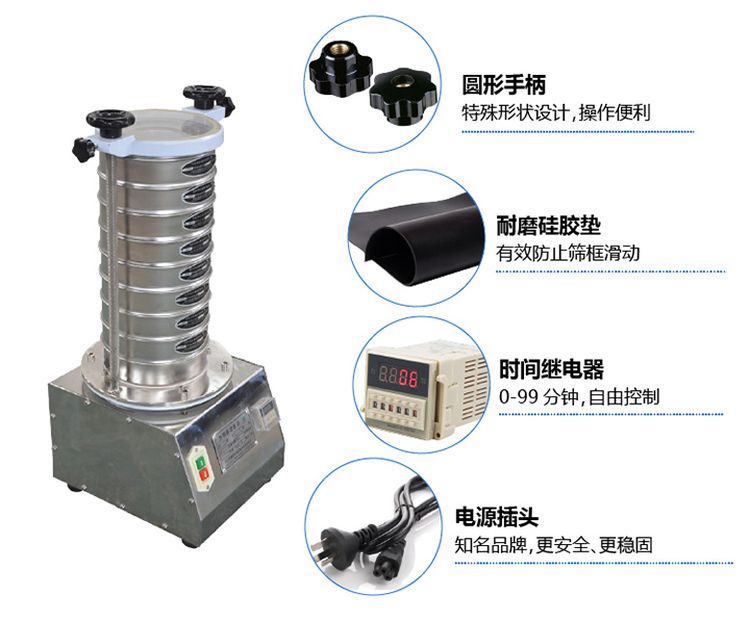 使每層試驗(yàn)篩內(nèi)只留相同粒度的物料,達(dá)到不同粒度的分離并確定此物料的粒度組成,使篩框中的物料能非常有效的起到過(guò)濾、分級(jí)、篩分目的。