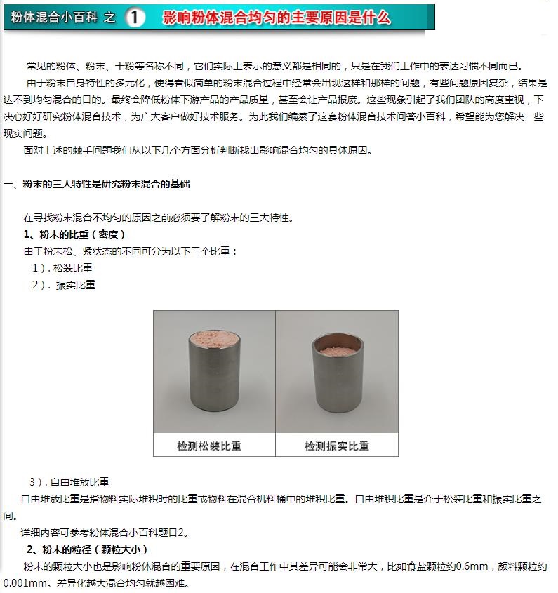解決方法是混合之前要針對這樣的粉體做相應(yīng)的混前預(yù)處理。詳細(xì)內(nèi)容參見粉體混合小百科題目7.