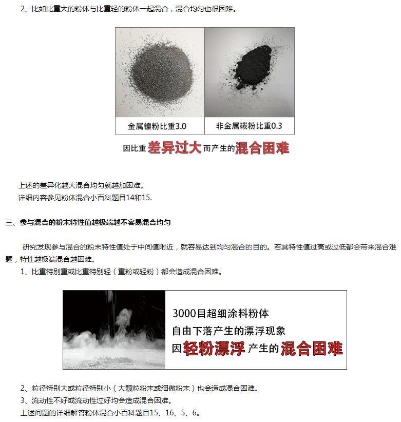有些粉體因為潮濕、粘性過大、含有不易分散的假顆粒、含有纖維束狀物質(zhì)等等均會造成混合困難。