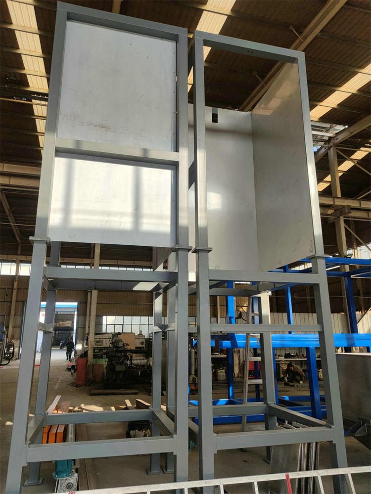 結(jié)構(gòu)噸袋卸料投料站用于噸袋裝粉狀、顆粒狀物料拆包卸料作業(yè)。該設(shè)備由機架、提升裝置、隔膜閥、暫存料倉等組成;根據(jù)工藝特點和設(shè)備尺寸,可以采用吊機和叉車兩種不同的方式; 可配有雙軌道,用于兩只電動葫蘆安裝的場合中,提高拆袋效率;材質(zhì)分為碳鋼和不銹鋼兩種;整套設(shè)備密封性好,操作簡便,極大的提高了生產(chǎn)環(huán)境和生產(chǎn)效率。