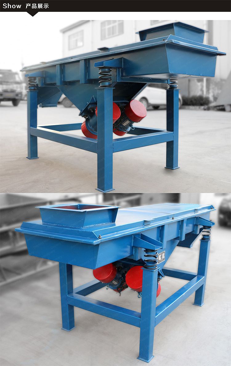 是以利用振動電機(jī)激振作為振動源,使物料在篩網(wǎng)上被拋起,同時受力向前做直線規(guī)則運(yùn)動,物料從給料機(jī)均勻地進(jìn)入篩分機(jī)的進(jìn)料口,通過多層篩網(wǎng)產(chǎn)生數(shù)種規(guī)格的篩上物、篩下物、從各自的出口排出。具有耗能低、產(chǎn)量高、結(jié)構(gòu)簡單、易維修、全封閉結(jié)構(gòu),無粉塵溢散,自動排料, 更適合于高產(chǎn)能流水線作業(yè)。