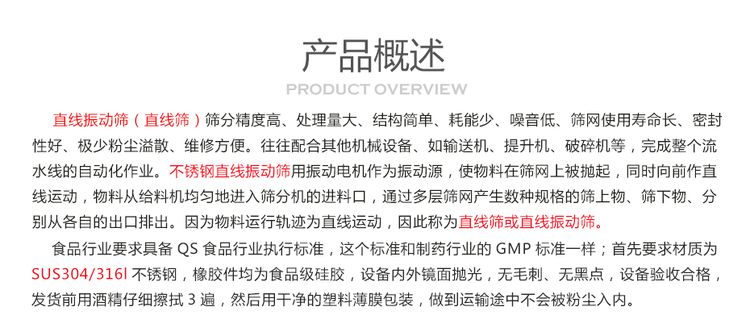 (2)和其他產(chǎn)品相比,直線篩擁有著篩選面積較大、處理能力效益較高且穩(wěn)定的優(yōu)勢特點(diǎn)。